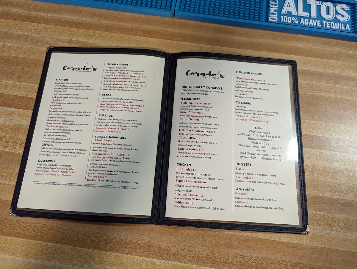 To wash it all down, Corado's offers a wide range of beverages, from refreshing Horchata and Tamarindo to bold mixed drinks like Mojito Classic and Pina Colada. Their cocktail selection includes Margaritas (classic and flavored), as well as premium liquors like Absolut Vodka, Johnnie Walker whiskey, and Herradura tequila. For beer lovers, enjoy selections like Miller Lite, Heineken, and Corona Extra.
